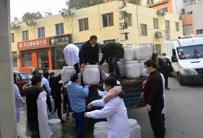 1月24日,中國石化江漢油田向武漢捐贈200噸消毒液,于1月25日凌晨抵達,并派發到各家新型肺炎防控醫院,緩解醫院、公共場所與社區大量消毒劑急用之需。