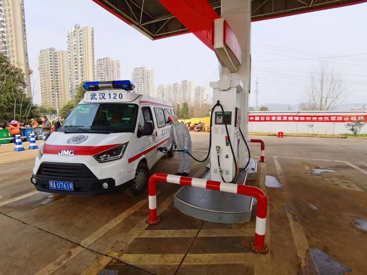 從2月3日凌晨起,中國石化銷售湖北石油武漢知音大道加油站,對所有進站加油的120救護車輛提供免費加油服務,對救護車司乘人員提供免費簡餐、速食服務。