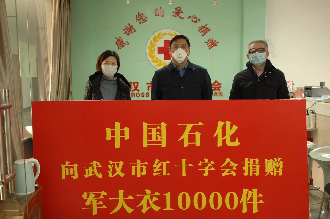 2月3日,中國石化向武漢市紅十字會捐贈10000件軍棉大衣,解決抗戰在一線的醫護人員保暖問題。